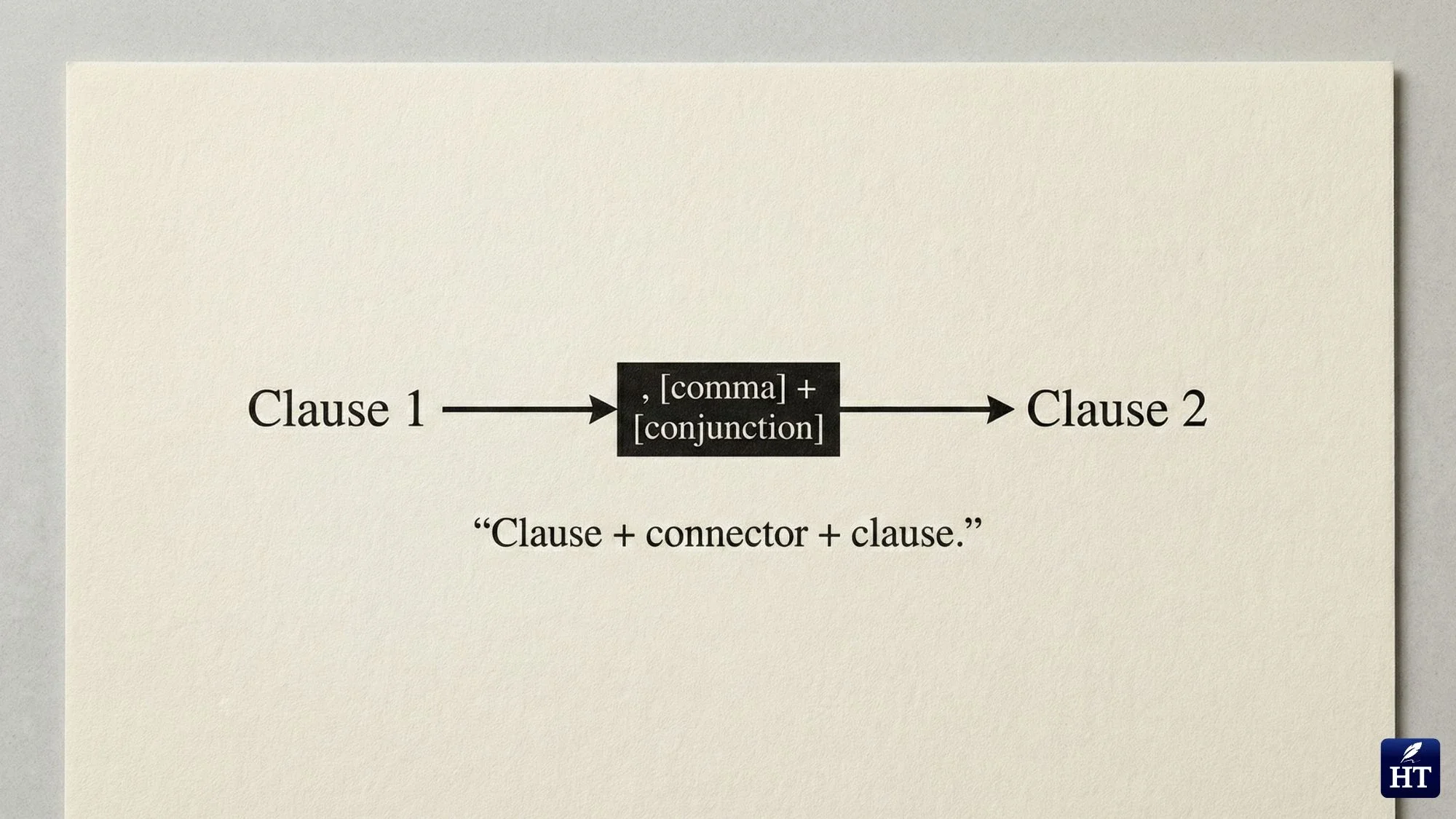 • Clause 2: Another complete idea with subject + verb